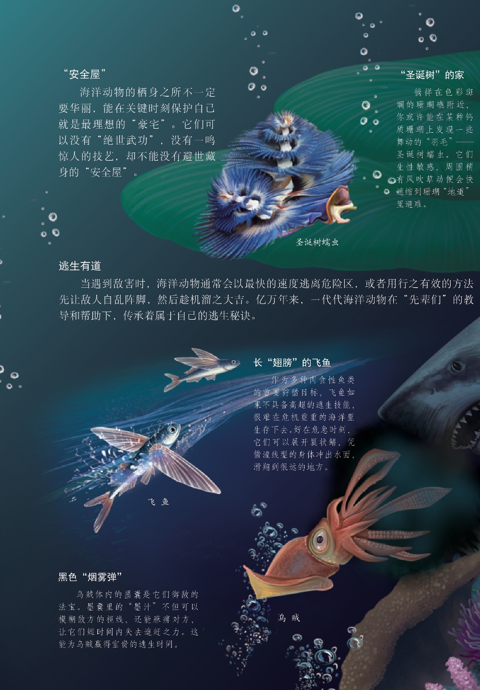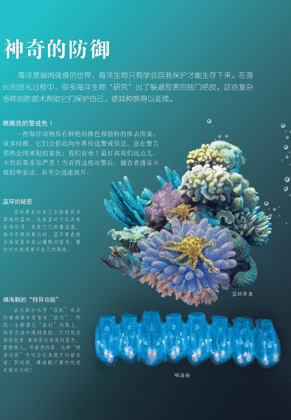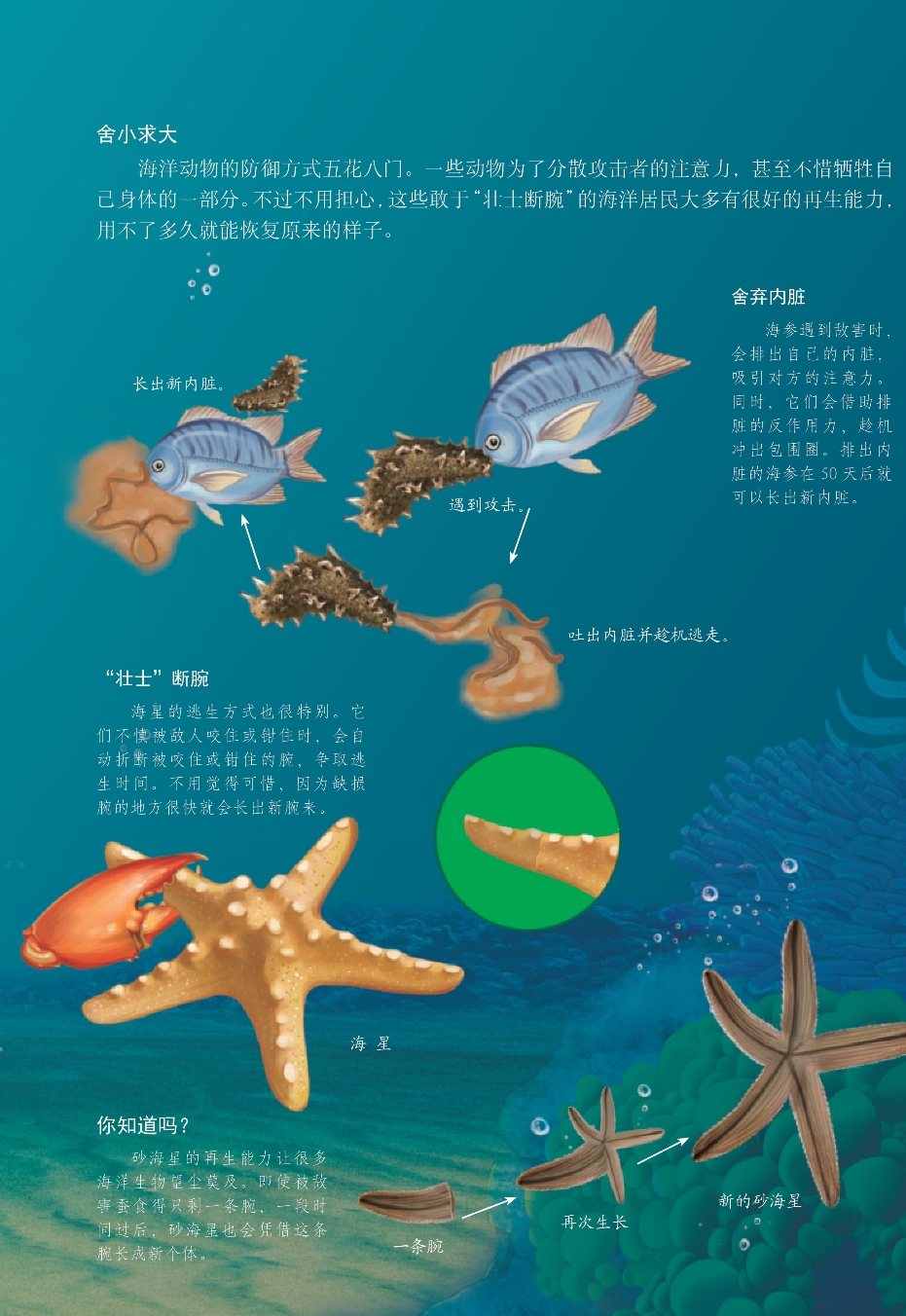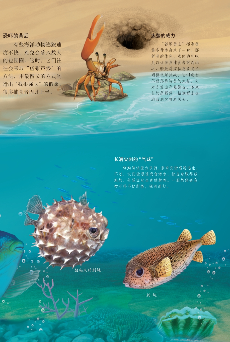 海洋是弱肉强食的世界,海洋生物只有学会自我保护才能生存下来。在漫长的进化过程中,很多海洋生物“研究”出了躲避敌害的独门绝技。这些复杂多样的防御术帮助它们保护自己,使其种族得以延续。