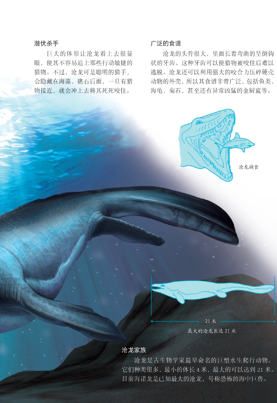 在白垩纪时期,陆地上的恐龙演化到了巅峰,海洋中的猛兽也不甘落后。沧龙就是白垩纪海洋中顶级的掠食者。
