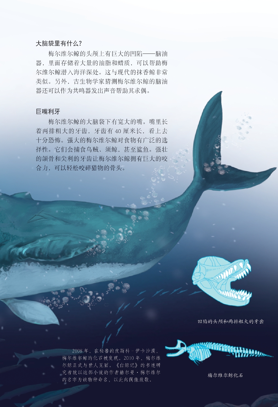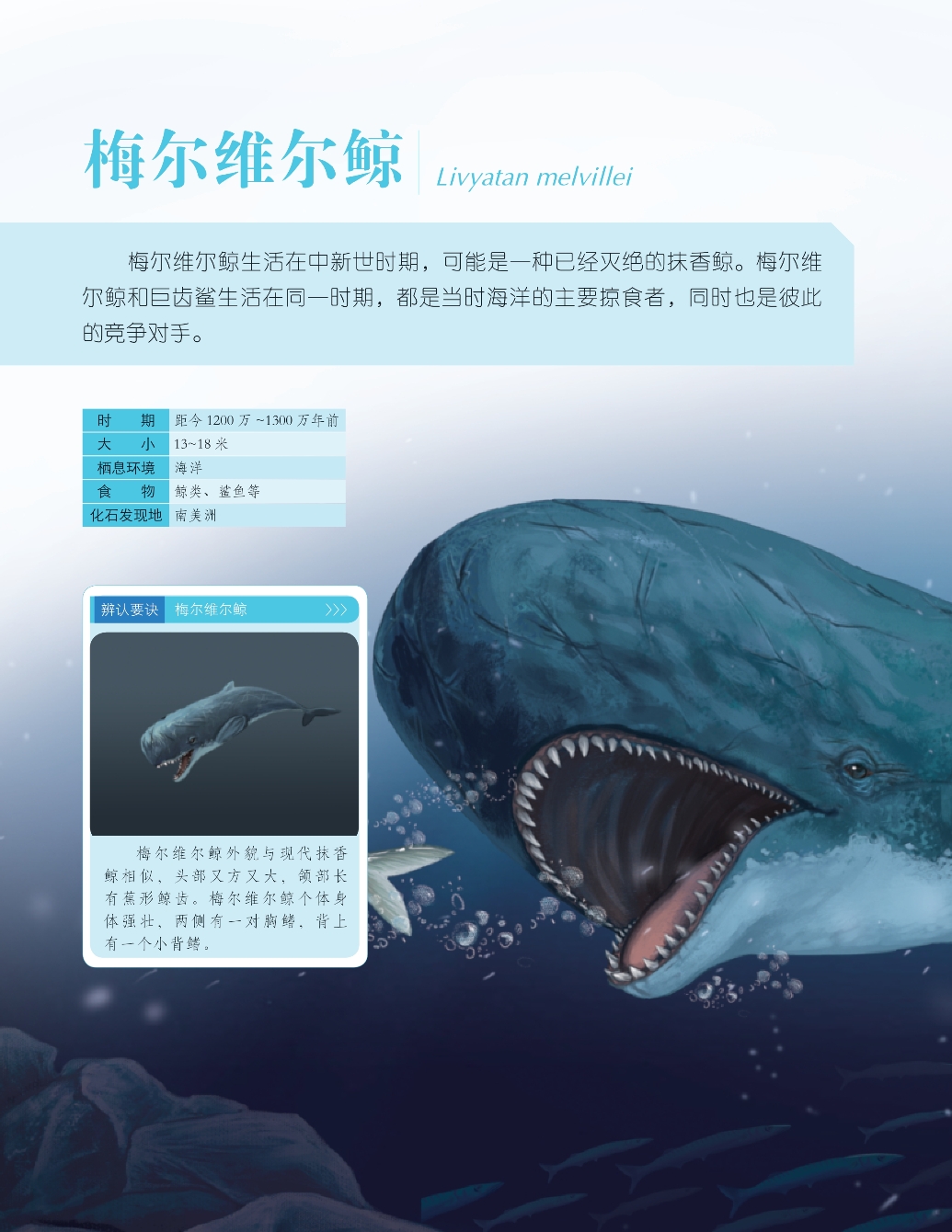 梅尔维尔鲸生活在中新世时期,可能是一种已经灭绝的抹香鲸。梅尔维尔鲸和巨齿鲨生活在同一时期,都是当时海洋的主要掠食者,同时也是彼此的竞争对手。
