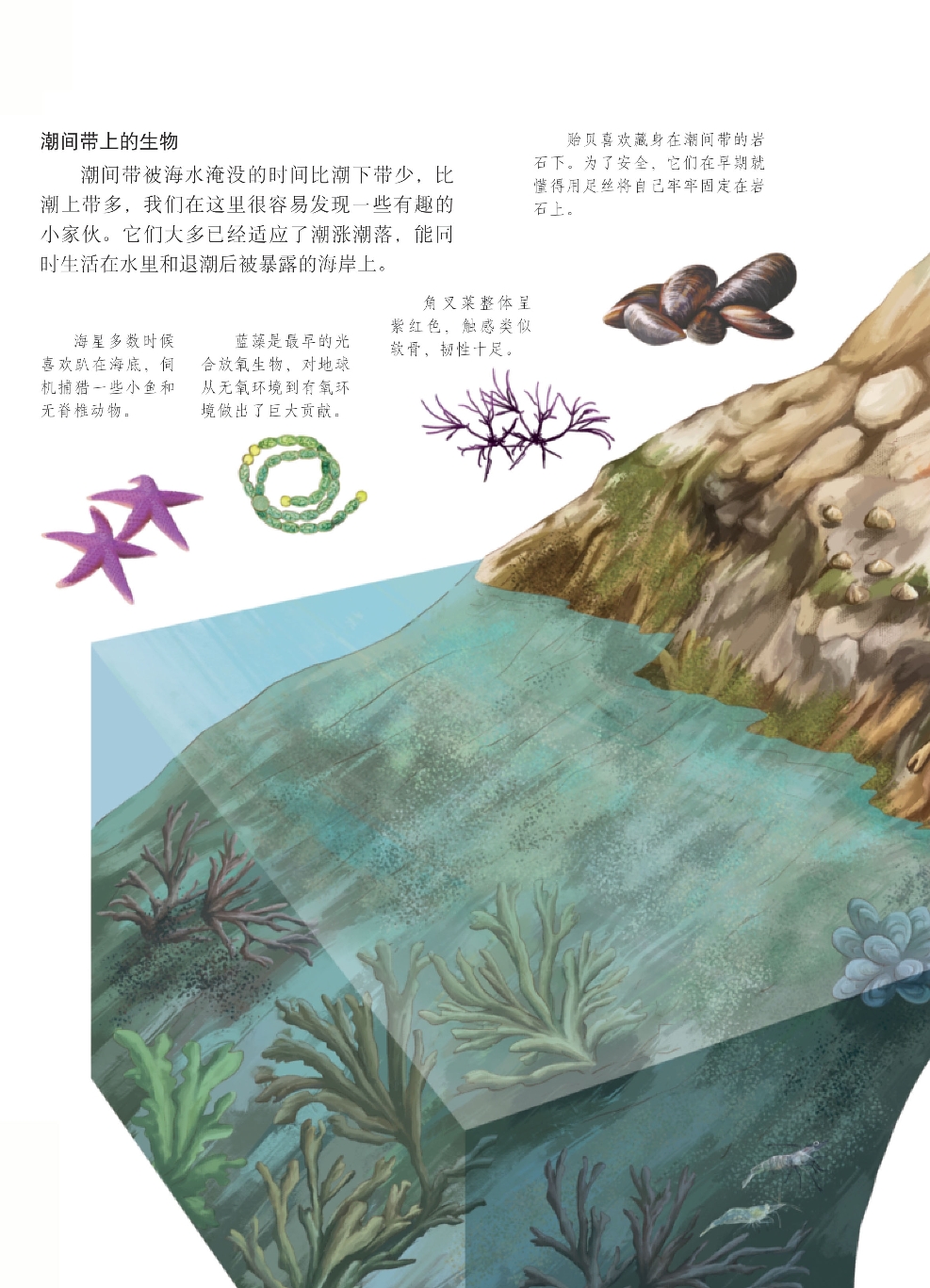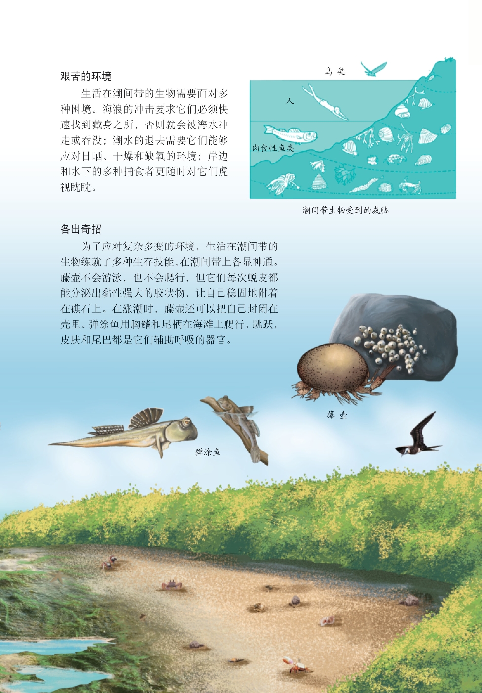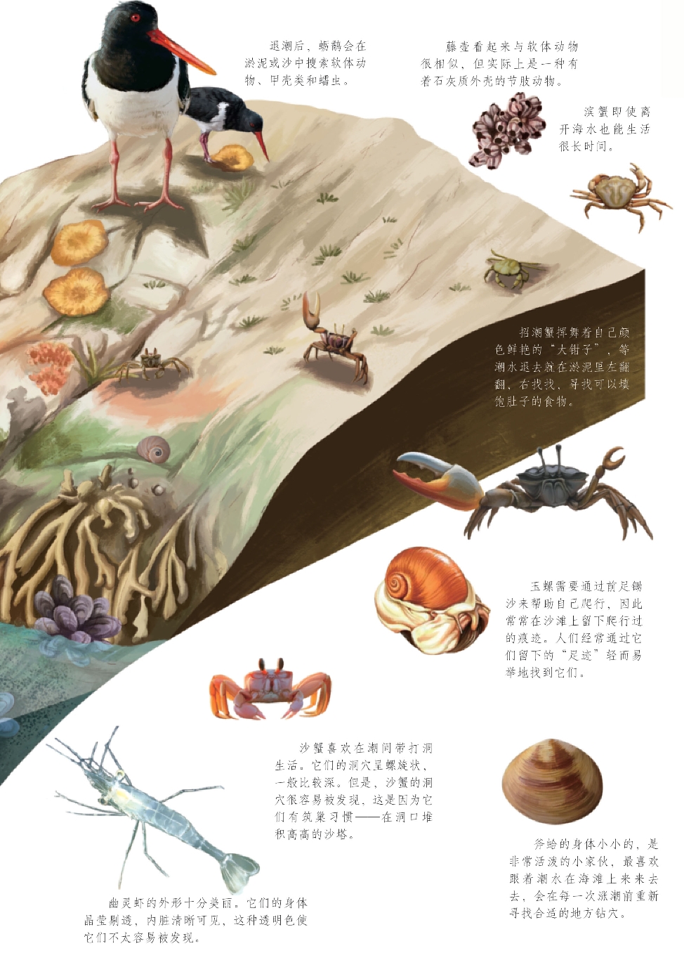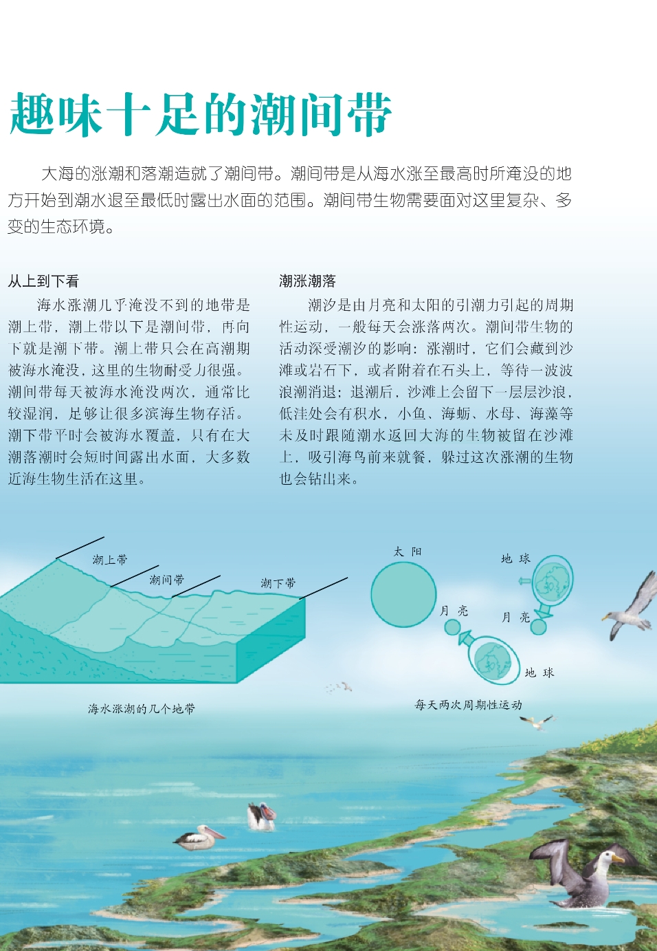 大海的涨潮和落潮造就了潮间带。潮间带是从海水涨至最高时所淹没的地方开始到潮水退至最低时露出水面的范围。潮间带生物需要面对这里复杂、多变的生态环境。