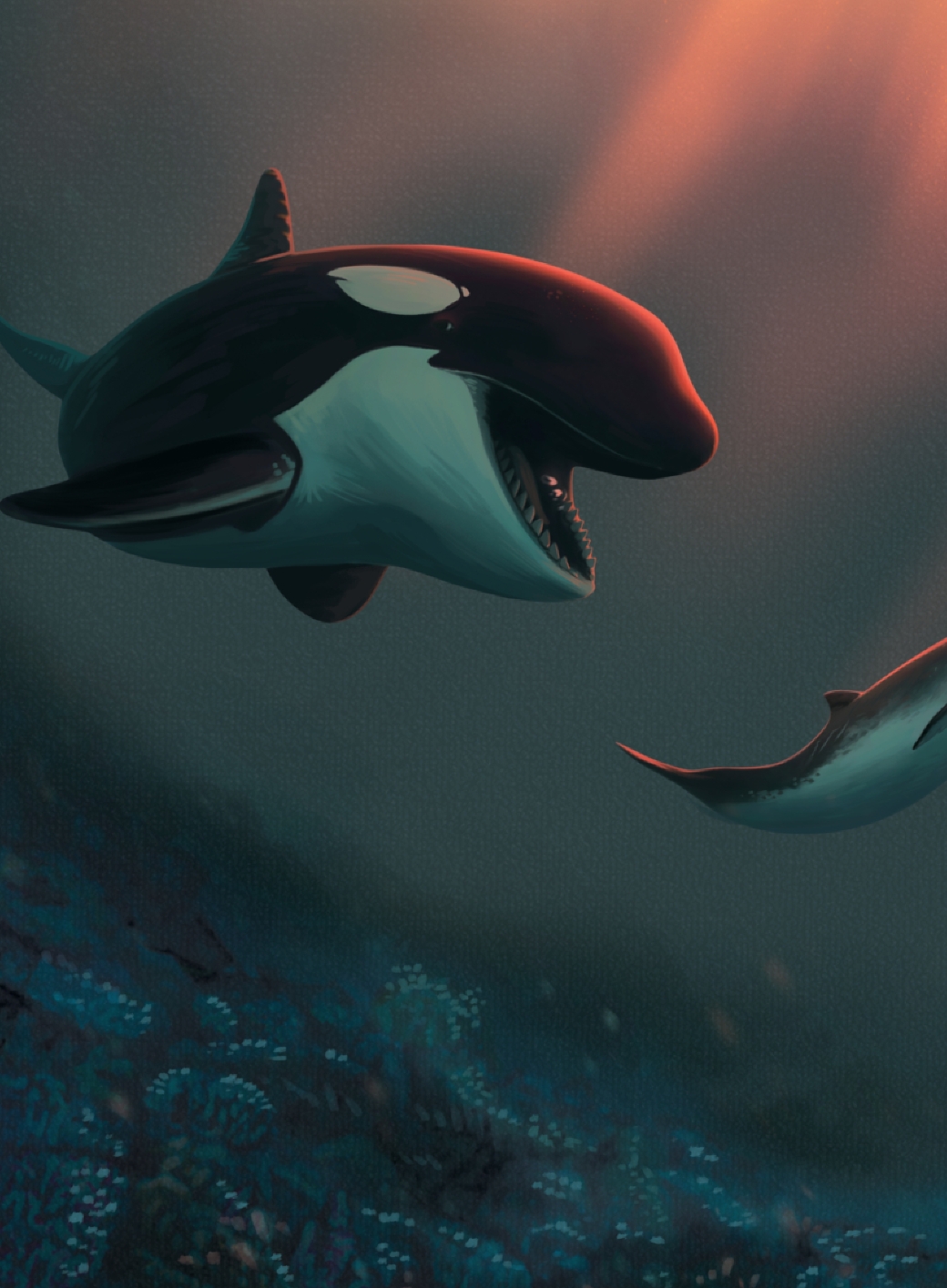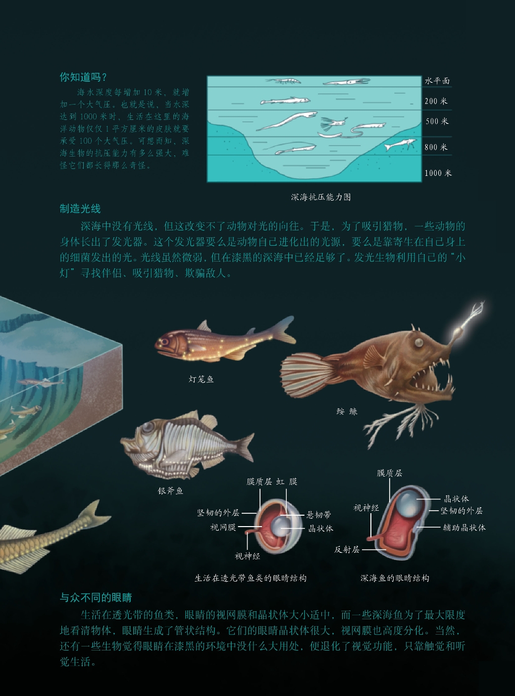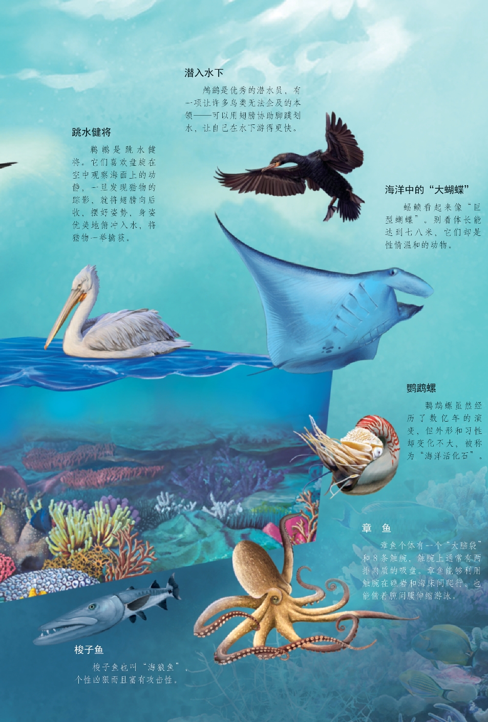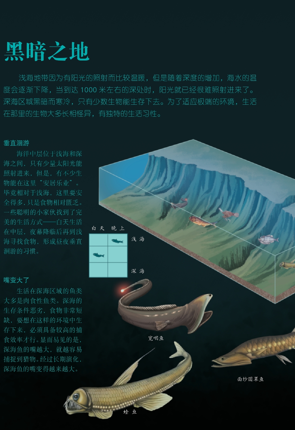 从海岸延伸到大陆架外部边缘的浅海区域阳光充足,海水被阳光照得温暖又明亮。海藻和浮游生物沐浴着阳光,在水下舒展身体,积蓄能量。许多鱼类和海洋哺乳动物也乐于在浅海区域活动,因为这里的环境让它们感到非常舒适。当然,最重要的是,大部分海洋动物能在这里找到适合自己口味的美味食物。
