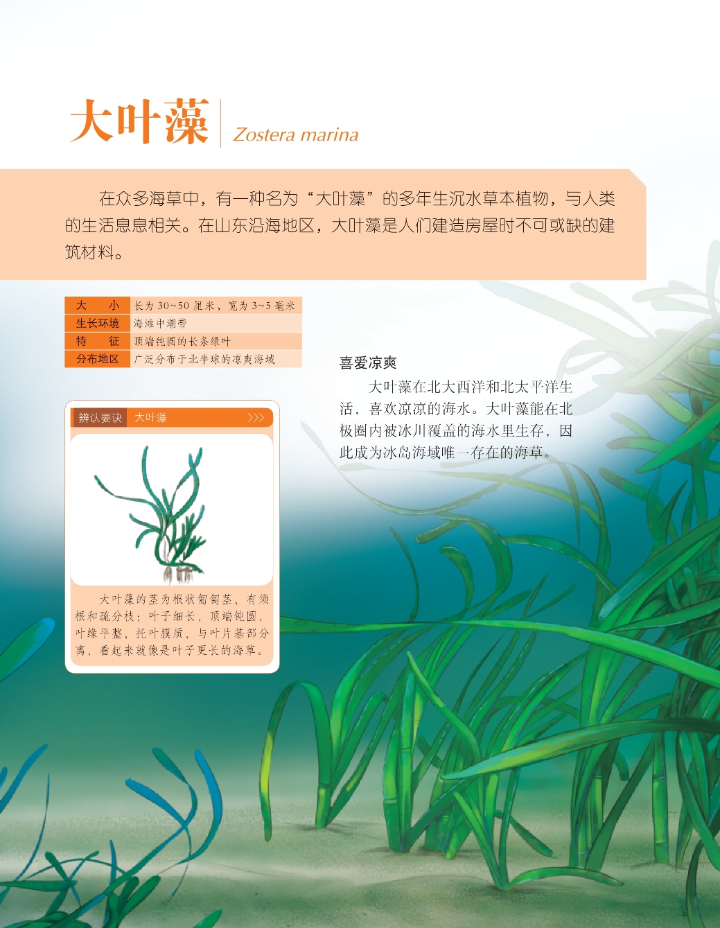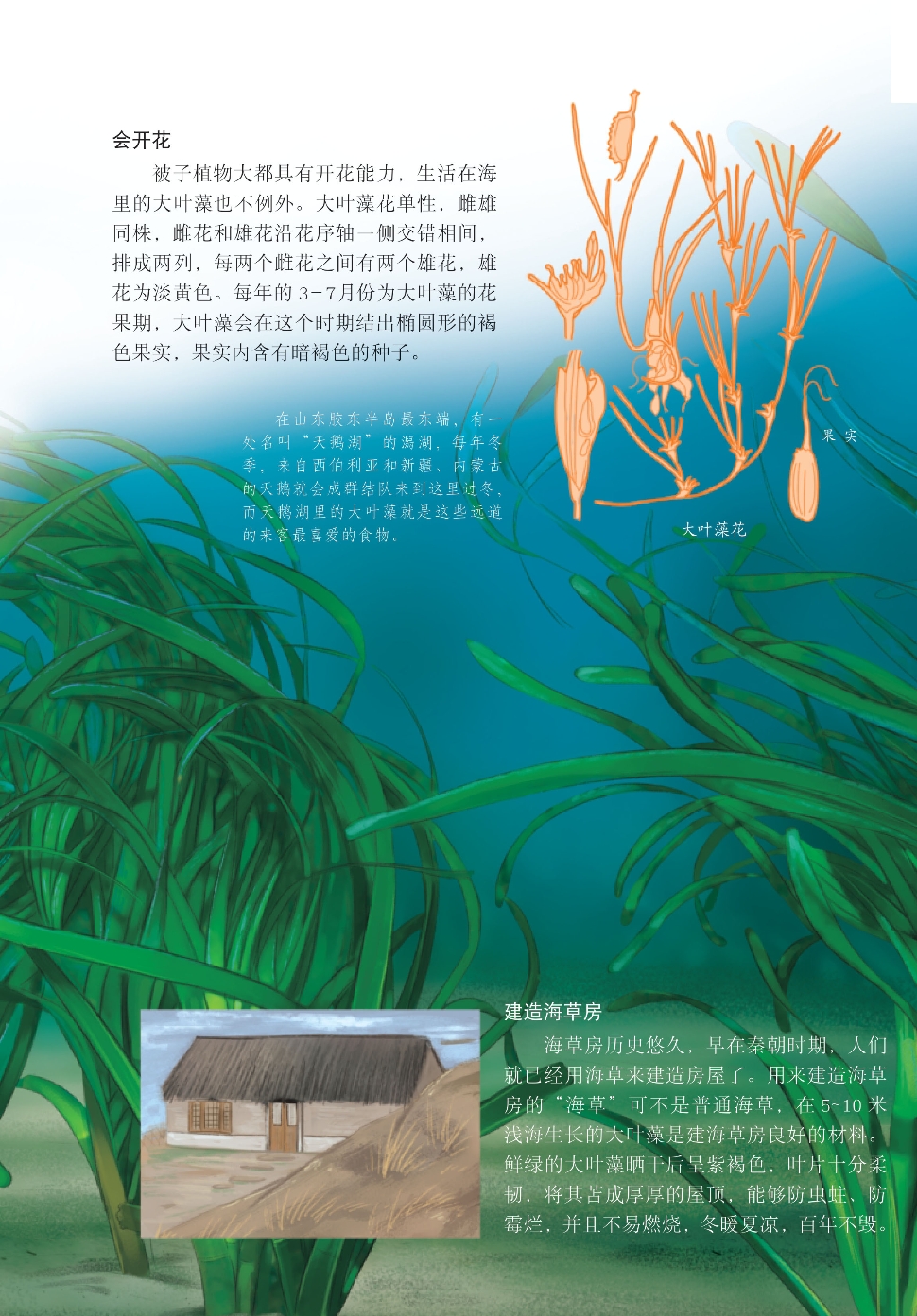 在众多海草中,有一种名为“大叶藻”的多年生沉水草本植物,与人类的生活息息相关。在山东沿海地区,大叶藻是人们建造房屋时不可或缺的建筑材料。