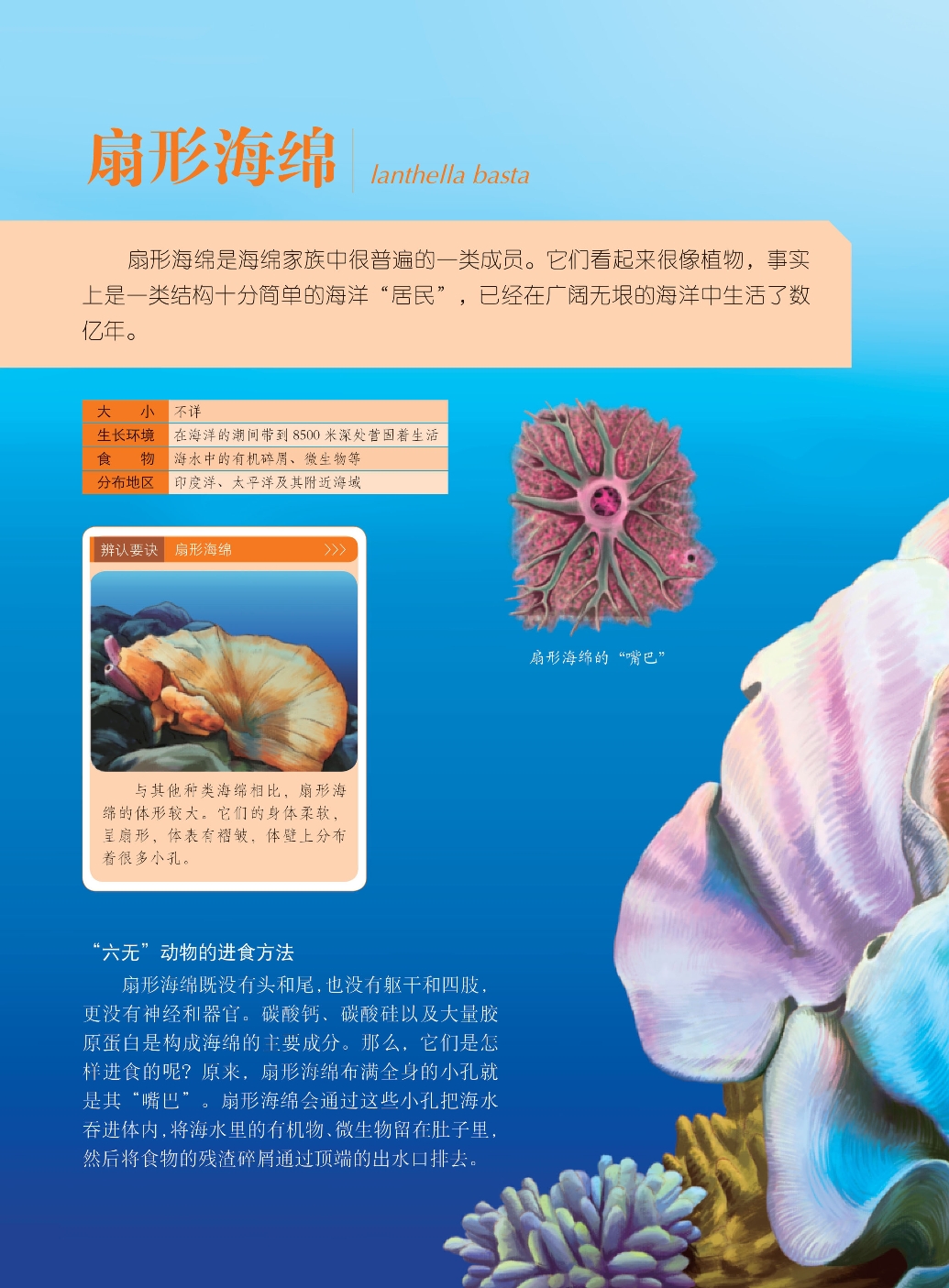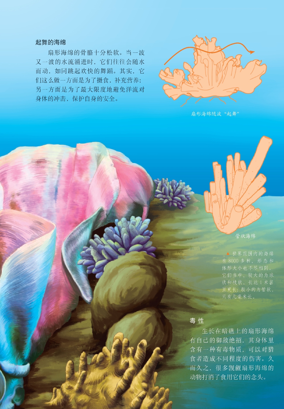 扇形海绵是海绵家族中很普遍的一类成员。它们看起来很像植物,事实上是一类结构十分简单的海洋“居民”,已经在广阔无垠的海洋中生活了数亿年。