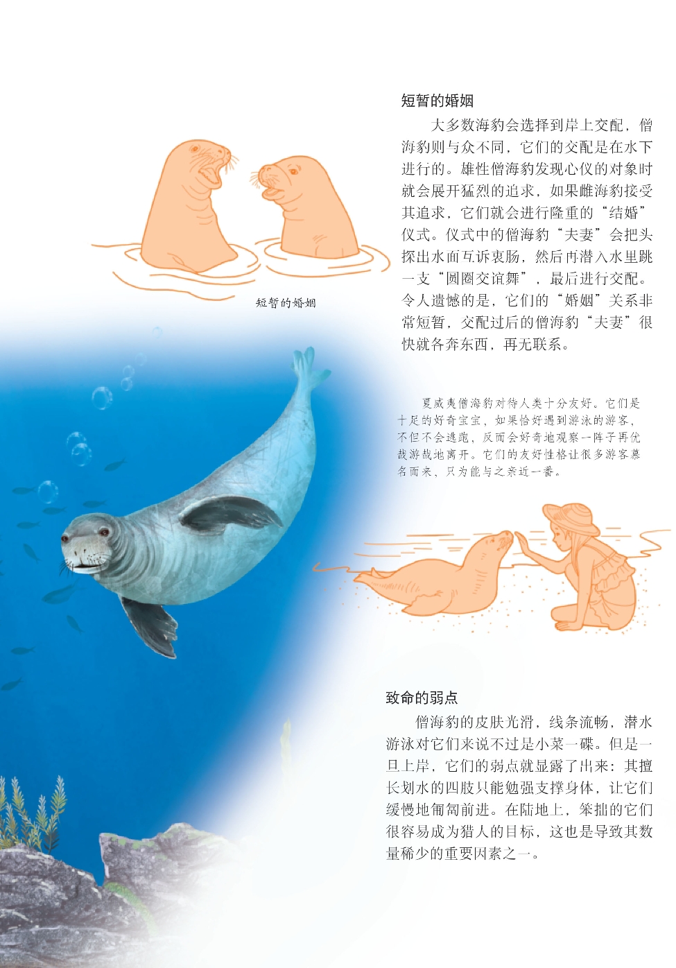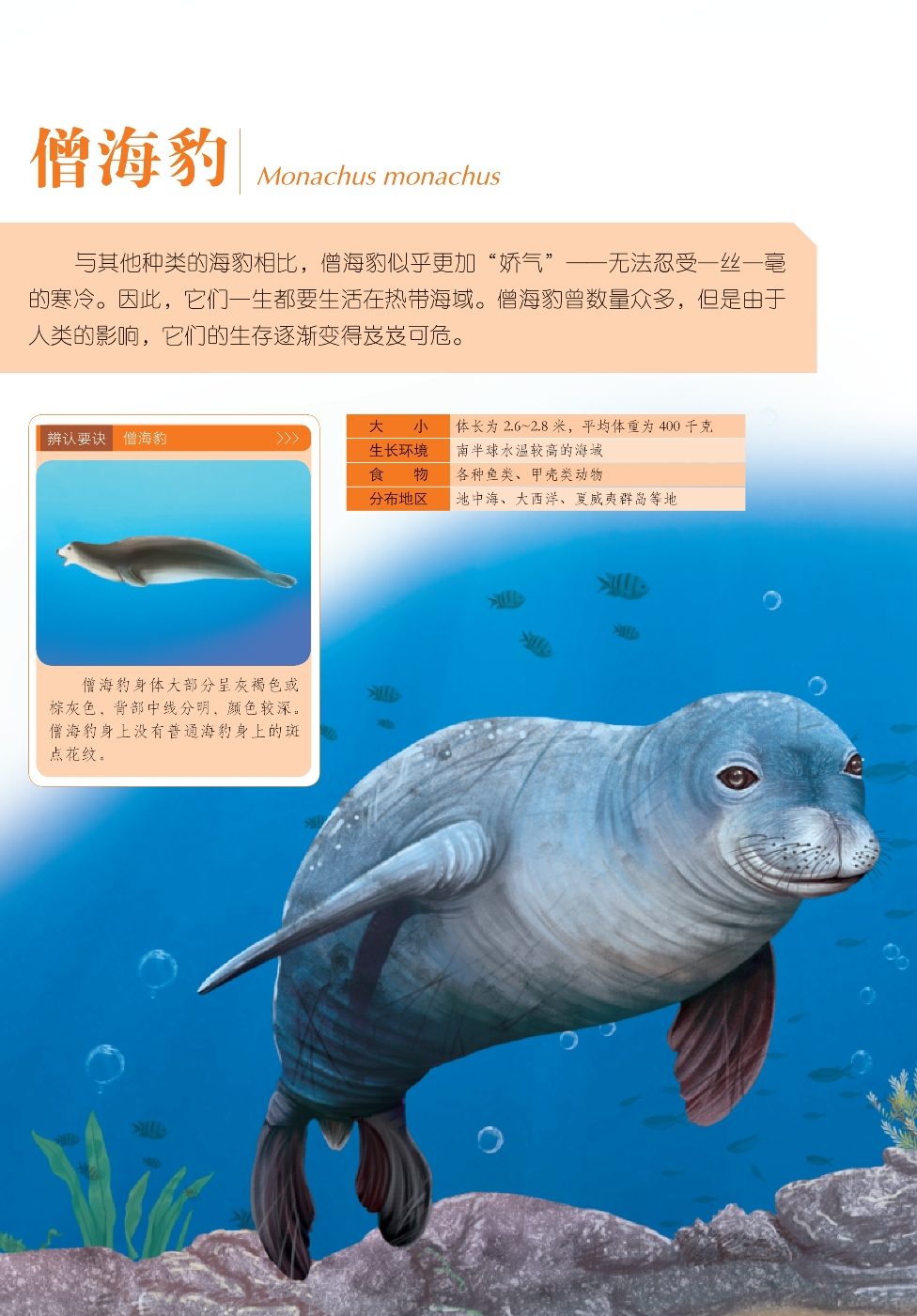 与其他种类的海豹相比,僧海豹似乎更加“娇气”——无法忍受一丝一毫的寒冷。因此,它们一生都要生活在热带海域。僧海豹曾数量众多,但是由于人类的影响,它们的生存逐渐变得岌岌可危。