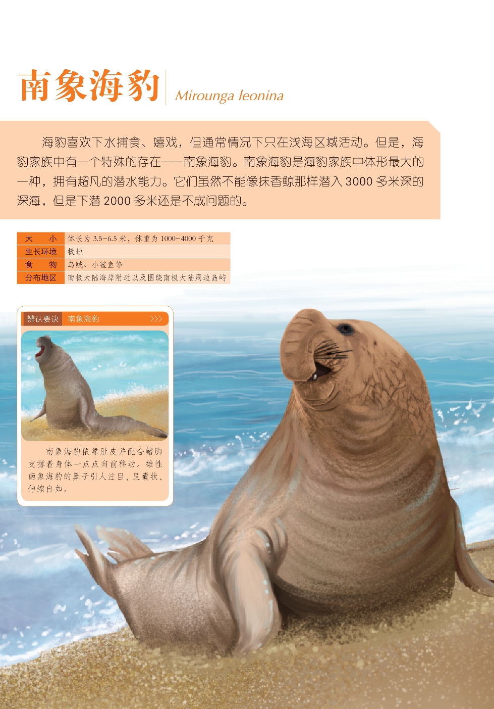 海豹喜欢下水捕食、嬉戏,但通常情况下只在浅海区域活动。但是,海豹家族中有一个特殊的存在——南象海豹。南象海豹是海豹家族中体形最大的一种,拥有超凡的潜水能力。它们虽然不能像抹香鲸那样潜入3000多米深的深海,但是下潜2000多米还是不成问题的。
