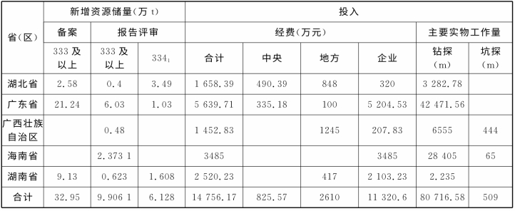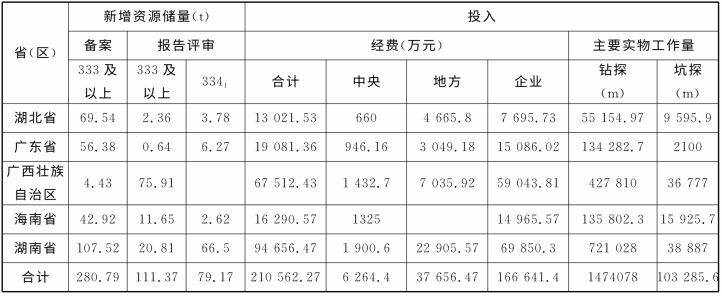 表1-6 中南地区钼矿勘查投入及新增资源储量表(2011—2015年)