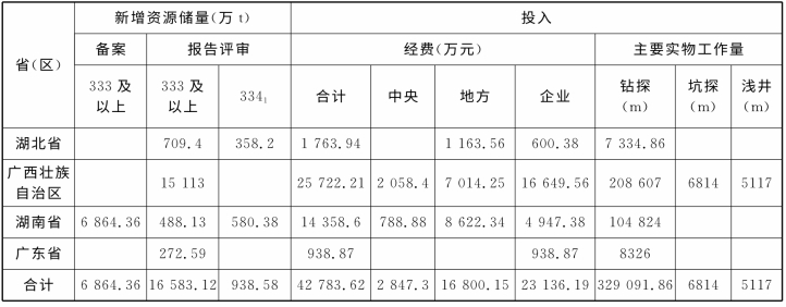 表1-10 中南地区锰矿勘查投入及新增资源储量表(2011—2015年)