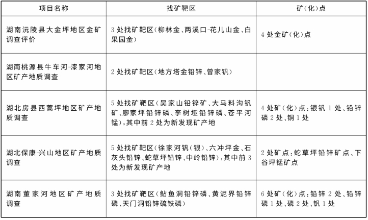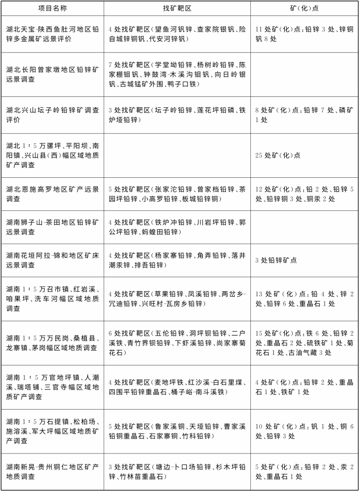 表2-1 “十二五”湘西-鄂西成矿带新发现的重要矿(化)点及找矿靶区统计表