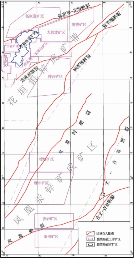 图2-11 花垣地区主要铅锌矿区分布示意图