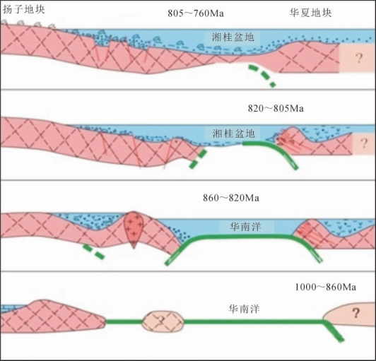 图4-5 扬子-华夏地块新元古代构造演化模式图
