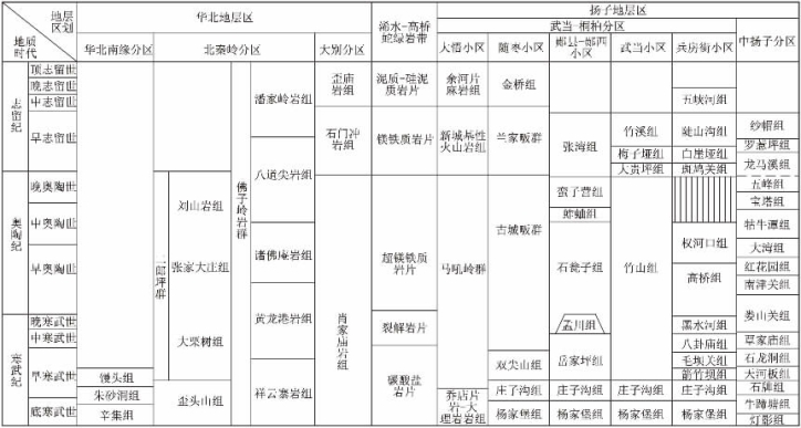 表5-1 武当-桐柏-大别成矿带早古生代地层划分对比表