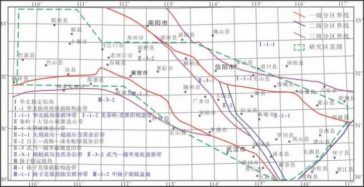 图5-6 武当-桐柏-大别成矿带早古生代大地构造分区图