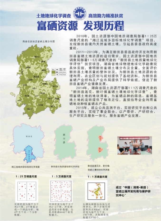 国土资源部2002年开始定点扶贫新田县14年,新田县富硒土地开发利用形成的宝贵经验已经成为地质调查服务扶贫攻坚的重要典范。