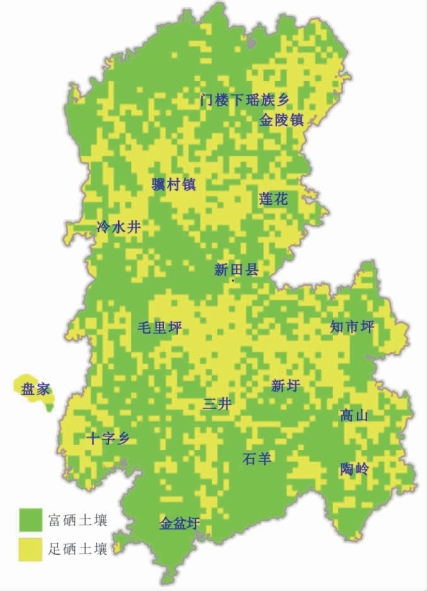 新田县富硒土壤主要集中分布在新田中部、北部和南部地区(图10-1)。