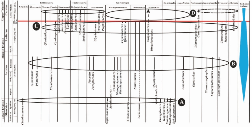 图11-4 华南三叠纪海生爬行动物宏演化过程