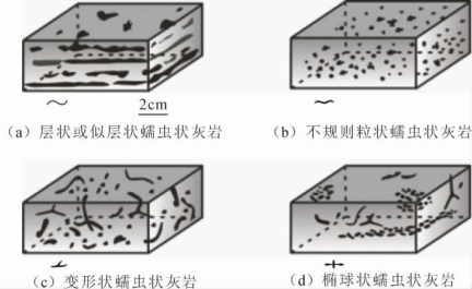 图11-16 蠕虫状灰岩类型示意图