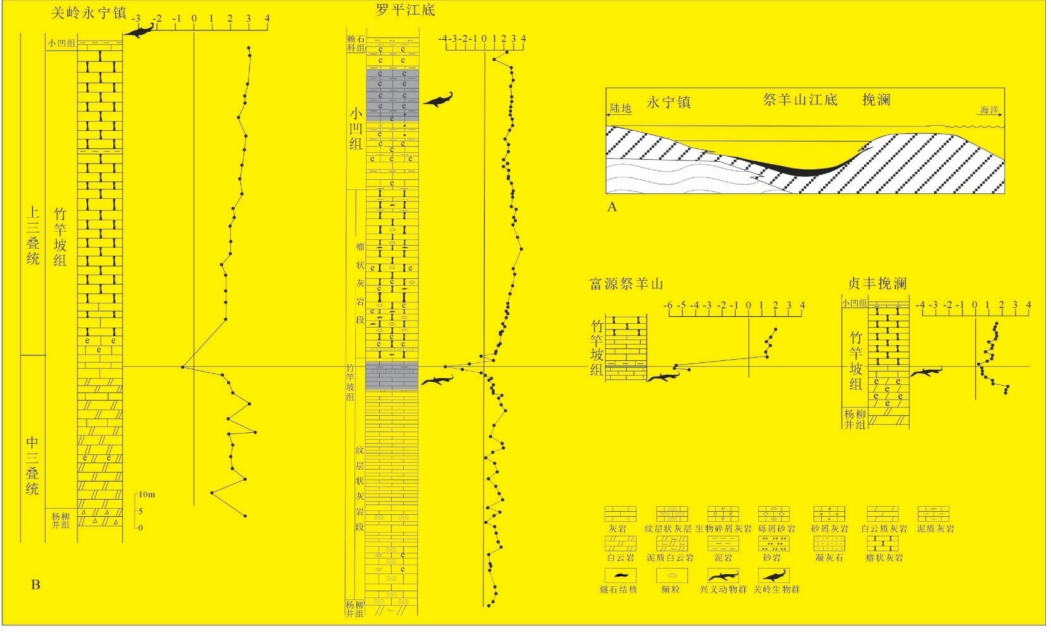 图11-5 扬子台地西南缘中晚三叠世之交C同位素变化曲线
