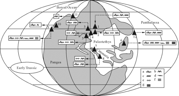 蠕虫状灰岩及其他“错时相”沉积构造的研究表明:“错时相”紧接生物大灭绝后出现,并随中生代海洋生态系的重建而退出正常浅海环境,这种耦合关系正是沉积体系和生态系对古生代—中生代地质突变及其导致的“特异”环境的自然响应,“错时相”的盛衰变化可以作为独立于化石记录分析之外的生态变化指针(Zhao et al,2008)。