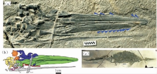 (3)在滇黔交界地区三叠纪海相地层中发现一系列重要海生爬行动物新属种:分别是奇特滤齿龙(图11-2)、华毕富源龙、罗平似楯齿龙、三峡欧龙、青山滇东龙和多腕板大头龙。在此基础上完善了鳍龙类及龙龟类演化谱系(Cheng et al,2011,2012,2014)(图11-3)。