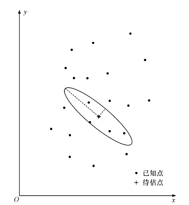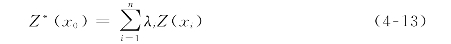 基于这两个要求,可以得到一个计算估计位置相邻样本权重的方程组。方程组的解是权重λi和预测方差。方程组由马瑟龙创建并阐述(Matheron,1963)。