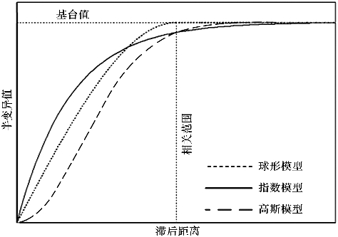 具有有限基值台的模型称为过渡模型,如球形、指数和高斯模型,三种模型如图4-5所示。