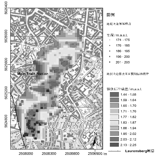 图5-22 主火车站地区的Hergenrath地层上边界克里金预测标准误差图