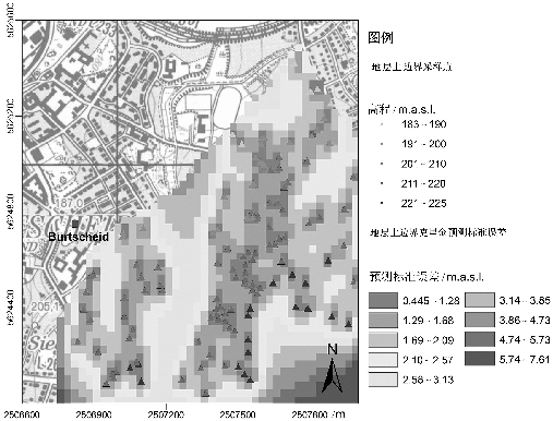 图5-23 Burtscheid地区的Hergenrath地层上边界克里金预测标准误差图