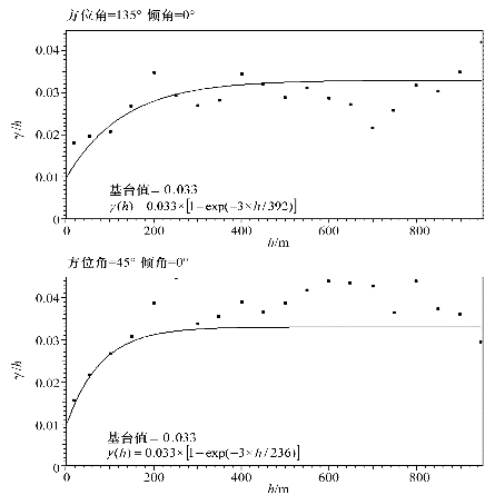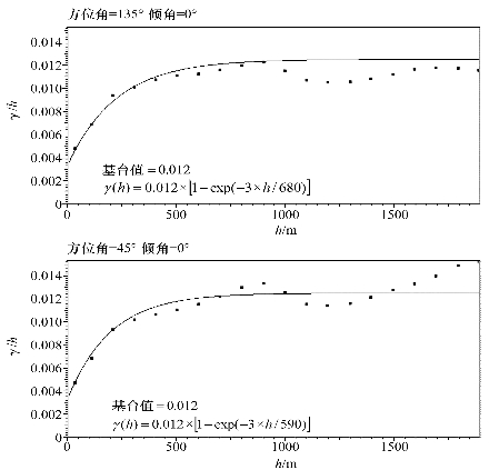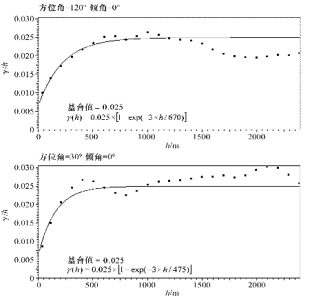 图5-30 砾石比值的三维试验变差函数值(点)和拟合的理论模型(实线)