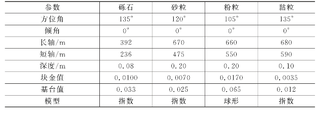 表5-7 砾石、砂粒、粉粒、黏粒比值结构特征参数和模型
