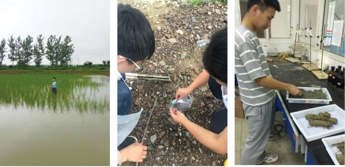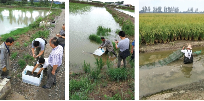 选择抗倒伏、高产、耐肥的优质杂交稻,试验品种为鄂中五号。水稻栽培按NY/T5117-2002无公害食品水稻生产技术规程操作,秧苗移栽时间为2016年6月11日,株行距30×15厘米,每穴栽插4~5株。插秧时田间保持水层5厘米左右,插秧后至分蘖期保持水层7~10厘米,分蘖后至成熟前根据稻株高度控制灌水深度在10~20厘米,水稻成熟后排水落干。插秧前每个生态系统施生物有机肥40千克/亩,水稻返青后追施尿素20斤/亩。基本上水稻的后期生长过程,泥鳅的代谢物可以提供水稻土壤中的肥力,不需要再进行额外的施肥。但有时候可能会出现养分不均衡的现象需要适当施肥。这时应考虑肥效对泥鳅的影响,尽量选择生物肥或投放对泥鳅没有不良反应的安全肥进行施用。水稻生长期间未见病害发生。10月25日水稻成熟,11月5日收割。