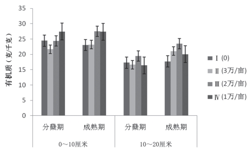 土壤有机质是土壤的重要组成部分,是土壤肥力的物质基础,对土壤肥力的影响很大,它不仅含有各种营养元素,而且还是土壤微生物生命活动的能源。试验中各稻鳅共生和水稻单作稻田土壤有机质的变化见图7。从图中可以看出,0~10厘米土层中,养殖泥鳅的各处理组随水稻的生长,土壤有机质含量均略有上升,分别增加了7.1%、12.9%、3.5%,而水稻单作系统有机质含量降低了5.8%。10~20厘米土层中,养殖泥鳅的各处理组随水稻的生长,土壤有机质含量也出现上升,且上升幅度较0~10厘米土层更大,分别增加了26.5%、20.9%、22%,而水稻单作系统有机质含量降低了2.5%。试验结果表明,水稻单作系统中随着水稻的生长,稻田土壤有机质氧化分解被利用,有机质水平降低。而在稻鳅共生系统中,泥鳅排泄物和残余饵料有利于稻田内有机质的累积,可以缓解有机质的下降。与下层土壤相比,上层土壤中有机质氧化分解而被根系吸收利用更多一些,因此下层土壤有机质累积效果更明显。泥鳅养殖密度对有机质影响差异不明显。