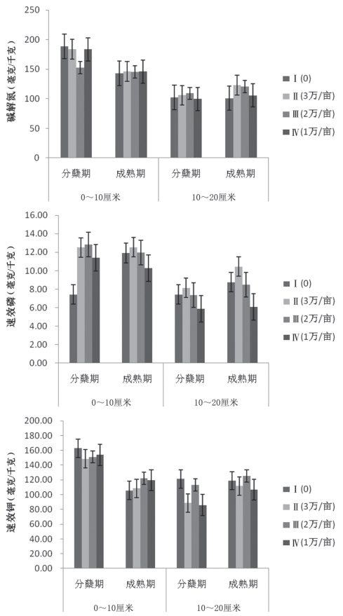 图8 不同处理土壤碱解氮、速效磷和速效钾的变化