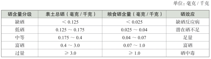 贾十军对安徽省土壤硒的研究中,根据土壤表层硒含量将土壤分为缺乏、边缘、中等、高和过量五类,何亚林等在研究贵州省土壤硒含量中,认为土壤硒含量大于0.4毫克/千克的土壤为富硒土。综合以上两家的观点,认为土壤硒含量的分级标准如表4所示。