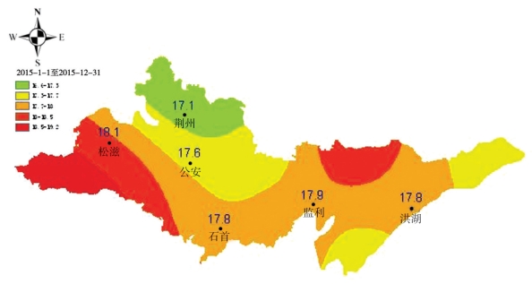图1 2015年荆州市各站年平均气温