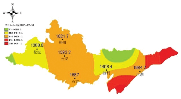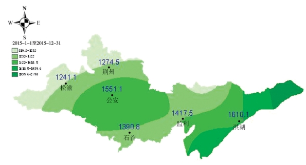 图2 2015年荆州市各站降水量