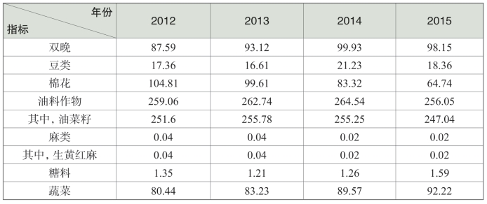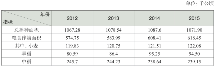 表10 2012—2015年荆州市主要农作物播种面积一览表
