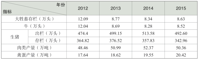 表12 2012—2015年荆州市主要禽畜产品产量一览表