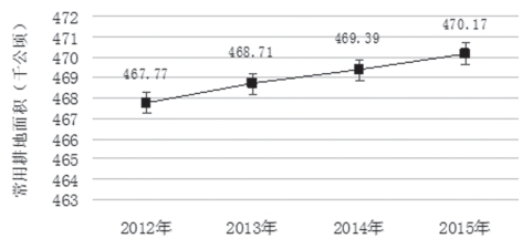 图5 2012—2015年荆州市常用耕地面积变化情况