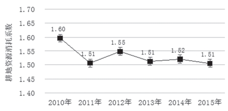 图6 2010—2015年荆州市耕地资源消耗系数变动情况
