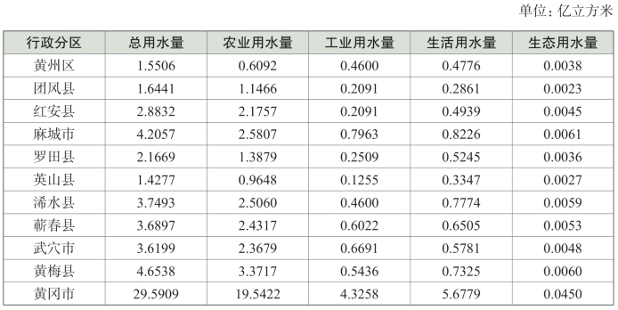 (2)用水量。用水量指分配给用户的、包括输水损失在内的水量。按农业、工业、生活三大类用户统计,农业用水包括农田灌溉用水和林牧渔用水;生活用水包括城镇居民、城镇公共、农村居民及牲畜用水;工业用水为取用的新水量,不包括企业内部的重复利用量。