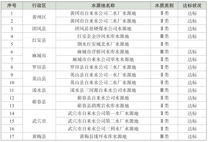表12 2015年黄冈市16个集中式饮用水水源地水质监测成果