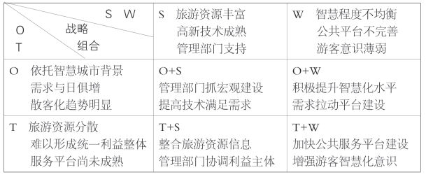 针对以上问题分析结合沈阳现状,课题组分析总结了沈阳智慧旅游SWOT矩阵分析列表,旨在为沈阳智慧旅游公共服务平台的建设提供设计思路。