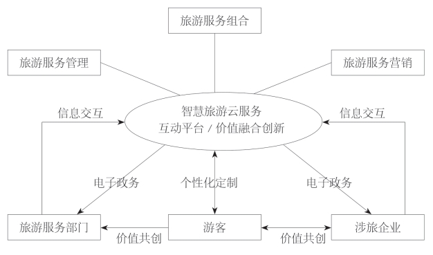 智慧旅游云服务是在智慧旅游的发展背景下,为适应游客快速变化的需求和日益增长的数据量,使得线上线下虚拟与现实相结合的一种智慧旅游解决方案。它运用云服务的理念和技术重新梳理旅游行业信息系统提供方式,运用分布式并行计算对旅游服务进行抽象、分类,从而形成层次化结构和多元化服务体系。它是提供动态易扩展虚拟化软硬件资源的一种模式,更是基于互联网服务的增加、使用和交付模式。通过在智慧旅游云服务平台上按需动态部署和配置云服务,打造基于云端海量旅游数据的互动运营平台,实现智慧旅游服务组合、服务管理和服务营销,为游客提供“吃、住、行、游、购、娱、商、养、学、闲、情、奇”等全要素、全过程、全网、一站式的个性化服务,从而增加用户价值,提高游客满意度,提升旅游服务品质,促进旅游产业优化转型升级。