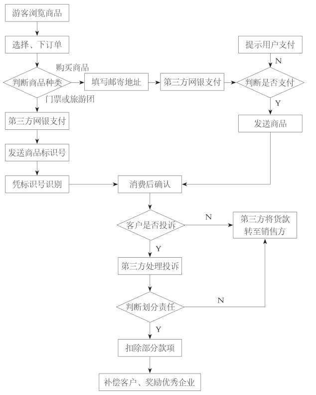 在酒店宾馆、旅行社、商店等实现在线销售功能,并通过第三方支付平台为游客提供保证,同时也对旅游行业提供规范的管理措施及实现良性的合作和竞争。平台可以实现类似于现在淘宝网等网站的功能,实现在线购买、销售,用电子商务进行产品推广,带动和促进沈阳旅游业的发展。