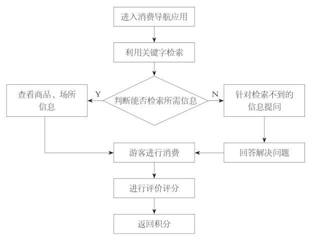 游客只需进入消费导航应用,即可方便的查找自己所需的产品信息,同时还设有评分评价机制,游客可以根据自己的实际情况,选择相应价位且评价更好评分更高的商品或场所,游客在消费后同样可以进行评分评价,同时,还应用到评价可获积分的功能,促进游客进行消费。消费导航功能可以在电脑、手机、电视、PDA等多种电子媒介上实现。消费导航功能的实现在为游客带来便利的基础上,同时刺激游客消费,促进旅游产业链的发展;而评分评价机制的实施起到了质量监督的作用,不仅让质监部门了解到消费者对商品的看法,而且促进商店商场进行自我规范、自我监督。