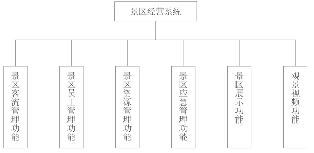 景区经营是智慧旅游公共服务平台的一个重要功能需求,通过智慧旅游公共服务平台能够有效地提高景区的管理水平,提升景区的形象。景区经营功能包括景区客流管理功能、景区员工管理功能、景区资源管理系统、景区应急管理功能、旅游展示功能、景区观景视频功能。具体结构图见下图: