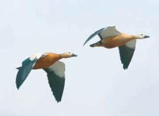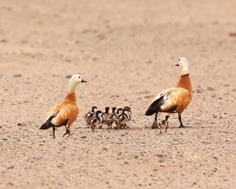 雄鸟头顶棕白色,颊、喉、前颈及颈侧淡棕黄色;下颈基部在繁殖季节有一窄的黑色领环。胸、上背及两肩均赤黄褐色,下背稍淡;腰羽棕褐色,具暗褐色虫蠧状斑。翼上覆羽白色,微沾棕色;小翼羽及初级飞羽黑褐色,次级飞羽外翈灰绿色,形成鲜明的绿色翼镜;三级飞羽外侧3枚外翈棕褐色。下体棕黄褐色;其中以上胸和下腹以及尾下覆羽最深;腋羽和翼下覆羽白色;尾和尾上覆羽黑色。雌鸟羽色和雄鸟相似,但体色稍淡,头顶和头侧几乎白色,颈基无黑色领环。