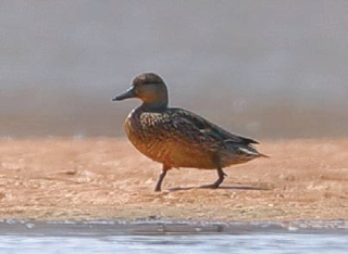 雌鸟上体暗褐色,具棕色或棕白色羽缘;下体白色或棕白色,杂以褐色斑点;下腹和两胁具暗褐色斑点;翼镜较雄鸟为小,尾下覆羽白色,具黑色羽轴纹。