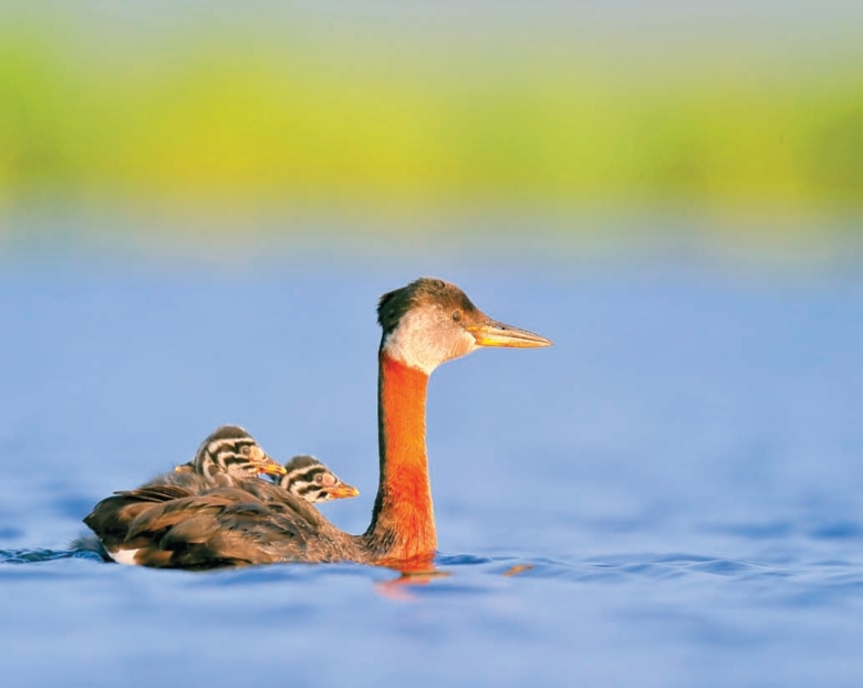 夏羽头顶黑色,两侧羽毛延长并稍微突出,形成短的黑色冠羽。颊和喉灰白色,前颈和上胸栗红色,后颈和上体灰褐色。翼缘覆羽和翼上外侧小覆羽白色,其余翼上覆羽灰褐色;初级飞羽灰褐色,带黑色斑点;次级飞羽白色,尾羽黑色。下胸和腹白色,具不明显的淡灰色斑纹;两胁白色,具黑褐色端斑。