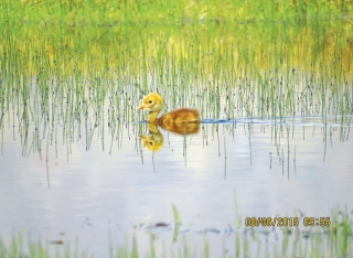 幼鸟头顶棕黄色,颈杂有黑色和白色,背灰黄色。初级飞羽和次级飞羽为黑色,越冬后,颈上1/3灰黑色,背残留有黄褐色羽毛。